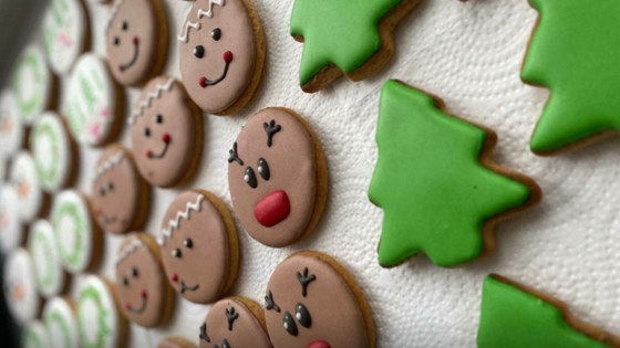 - Когда печенья остынут, их можно покрыть глазурью. Для неё нужно будет белки взбить с сахарной пудрой до образования плотной, густой массы и добавить ароматизаторы и красители. Переложить в кондитерский мешок и отдаться творчеству: нарисовать на печеньях можно всё что угодно.