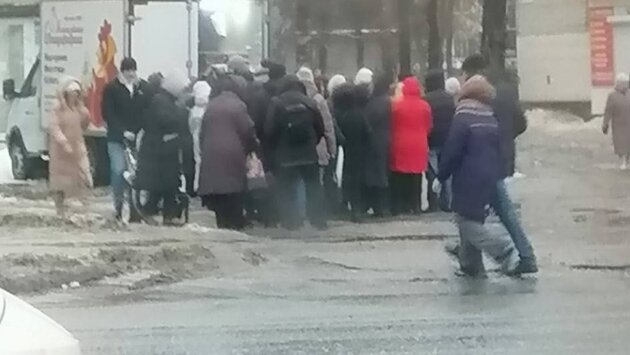Такую картину в четверг, 21 декабря, запечатлел на фото один из горожан. На выложенном в Сеть снимке - фургон, из которого бойко идет торговля. Возле него толпятся около двух десятков человек.