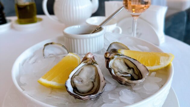 – Теплый и легкий салат с морепродуктами, где много морепродуктов и немного овощей и зелени для свежести, сочности и баланса. – Дальневосточные гребешки со спаржей и тонким сливочно-трюфельным соусом – Филе сибаса по-сицилийски: рыбу обжаривают до золотистой корочки и подают с базиликом и сочным томатным соусом с добавлением каперсов, чеснока и оливок.