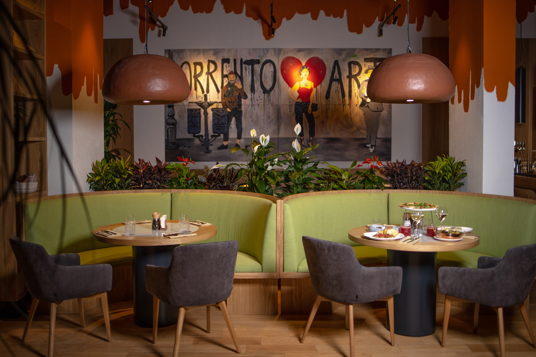 Атмосферу Италии на горнолыжный курорт привнесли основатели холдинга Family Garden, открыв семейный ресторан с душевной атмосферой, располагающей к празднику и щедрым застольям. Рецепты аутентичных блюд бренд-шеф Владимир Земляной привез из путешествий по родине пармезана. В честности концепции сомневаться не приходится: пасту, тесто и основы для десертов в ресторане готовят самостоятельно, а легендарный негрони выдерживают в деревянной бочке. Еще об Италии напоминают картины — точные копии граффити с улиц настоящего Сорренто.