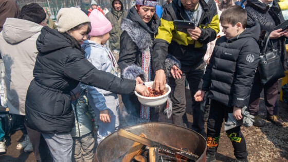 Все желающие могли погладить и покормить оленей, а после попробовать суп с олениной по-эвенски и с водорослями по-корякски, а также жареную корюшку и навагу. Из напитков предлагали чай из таежных трав.