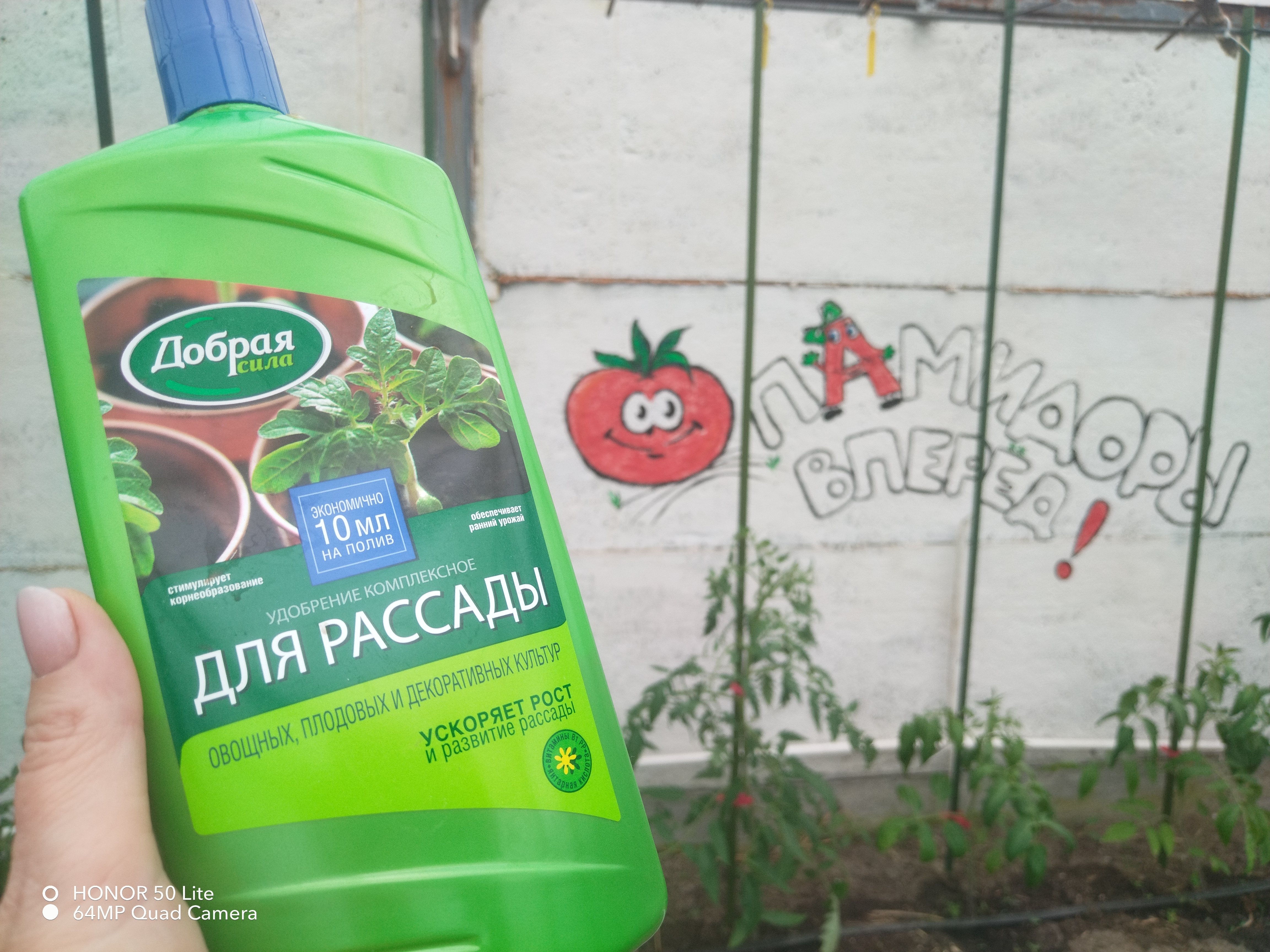 Раз в две недели подкармливаю рассаду очень удачным удобрением «Добрая сила» для рассады. Это удобрение ускоряет рост и развитие рассады, содержит все необходимые минеральные вещества в сбалансированной пропорции. В удобрении содержатся азот, фосфор, магний, гуматы, а также микроэлементы в хелатной доступной для растений форме: железо, марганец, медь, цинк, молибден, бор и кобальт, а также витамины B1 и янтарная кислота. А ещё оно очень экономное — бутылкой на 1 л пользуюсь уже второй сезон.