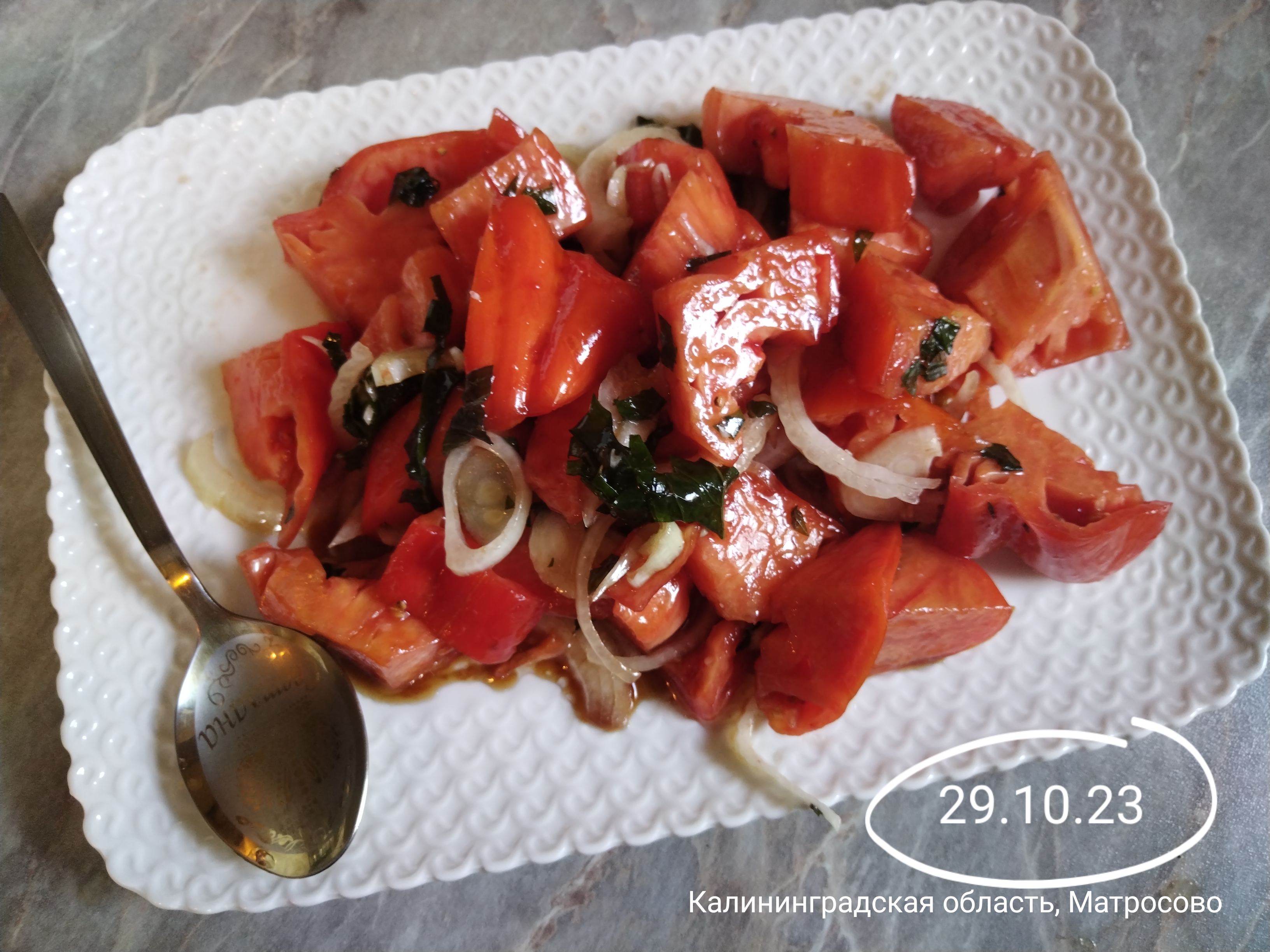 А это последний помидор любимого сорта сезона-2023, который был с удовольствием съеден в салате.