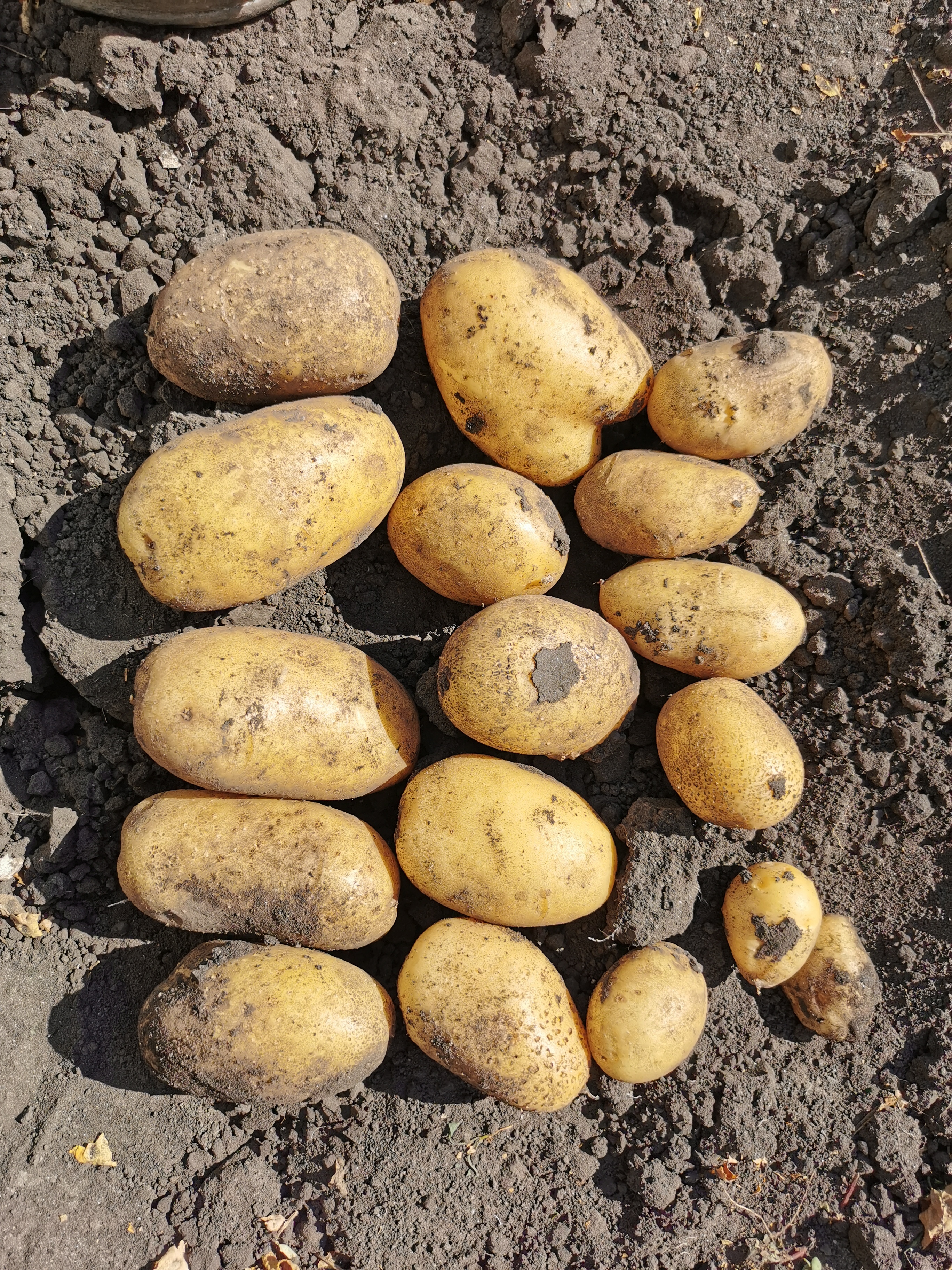 Следующим этапом будет снова прополка, ведь сорняки не дремлют. Возможно, понадобится и ещё одно окучивание. Посмотрим в динамике. Надеемся, что картофель не подведёт и урожай порадует. Каким он будет? Может, таким, как на фото ниже?