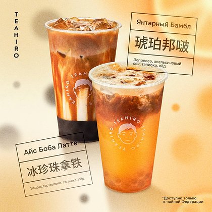 «ЧТК» с тремя видами карамели и черной тапиокой — 390 рублей; «Таро» со вкусом медовика — 390 рублей; «Айс бабл-ти» с двойным эспрессо и карамелью — 390 рублей; «Матча» с черной тапиокой — 390 рублей; «Бабл-ти на основе японского какао» с черной тапиокой — 390 рублей.
