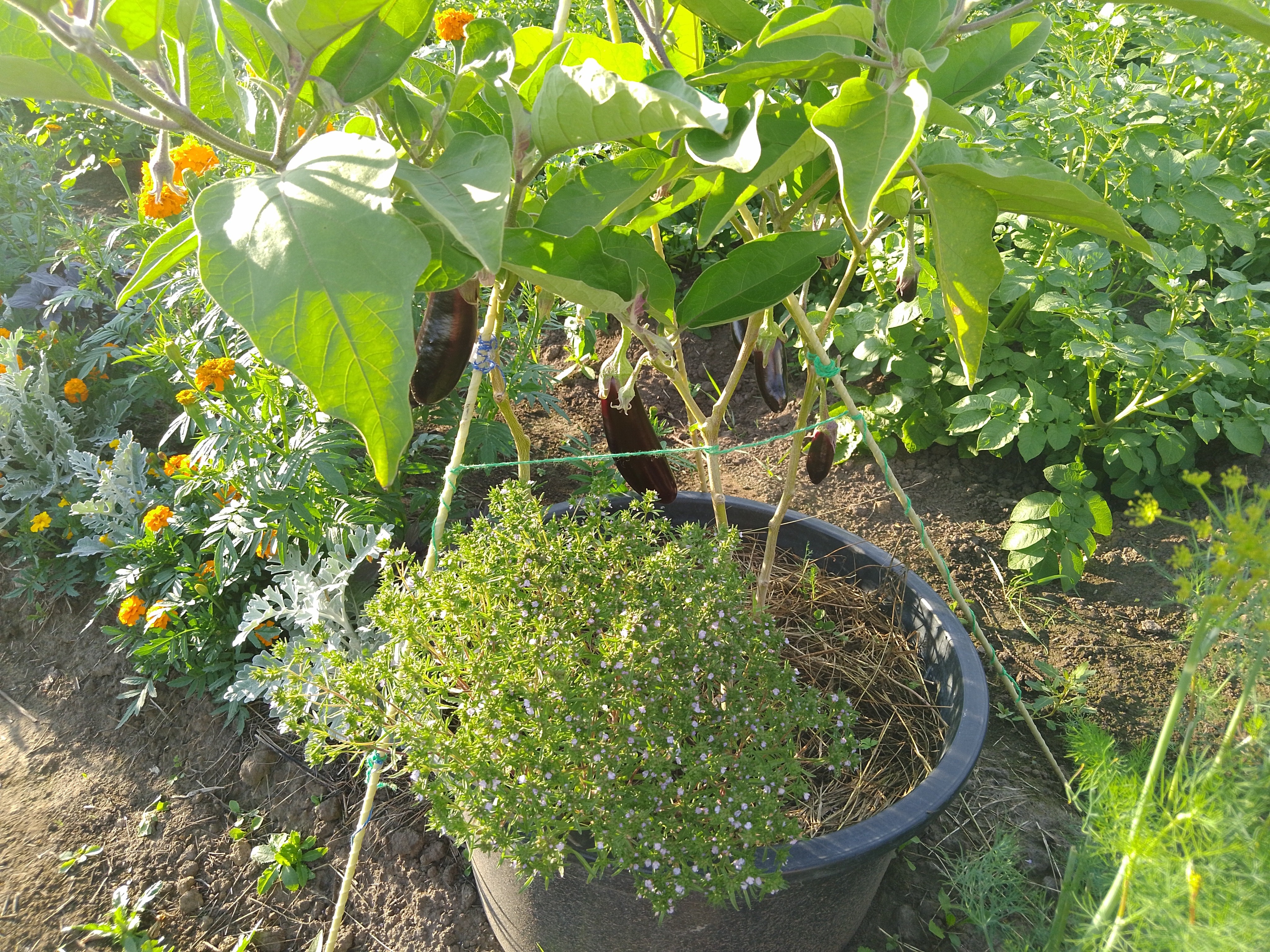 Среди овощей хорошими компаньонами являются все бобовые, клубника и лук. Я в этом сезоне высадила его с баклажанами, и мне понравилось.