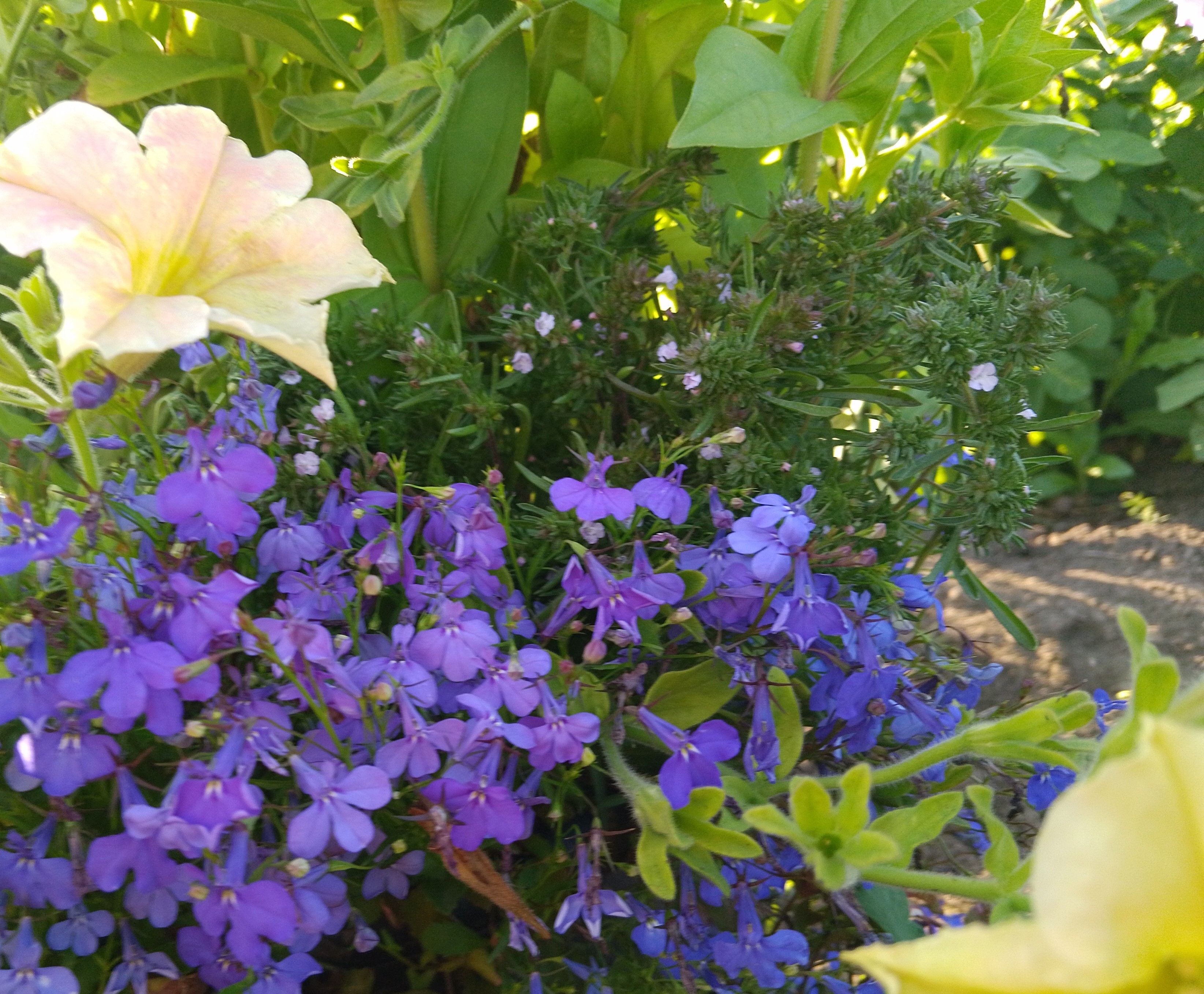 Где и с чем высаживаю свой чабер? Он отлично сочетается с цветами на клумбе, использую его как небольшой элемент цветочных миксов в кашпо.