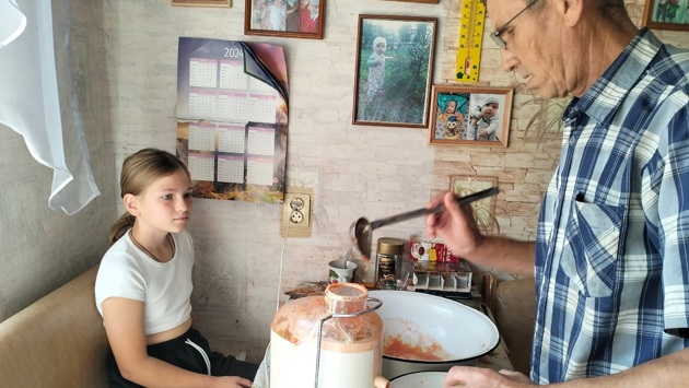 О том, каково бойцам на передовой, житель Лыскова Алексей Овсянкин знает не понаслышке, – сам прошёл Афганистан, Чечню. Знает и о том, как там, вдали от дома, хочется простой, но такой вкусной и сытной домашней еды. Поэтому и открыл на своей кухне настоящий кулинарный фронт. Теперь даже представить трудно, что ещё недавно он не умел готовить. Алексей Овсянкин признаётся, что с самого начала спецоперации хотел как-то помочь бойцам, но не знал, куда обратиться. «Я бы и сам туда поехал! – говорит он. – Но здоровье уже не то, обузой буду для ребят». Как-то на одном мероприятии наш герой услышал выступление волонтёра Альбины Кварацхелия. Мы рассказывали об этой отважной жительнице Лыскова, которая вместе с подругой Натальей Рахмоновой организовала сбор гуманитарных грузов и сама отвозит их бойцам. Теперь Алексей Овсянкин знал, что нужно делать. «Я выращиваю лук, – продолжает он. – Пришёл с ним на рынок, а там лука полно продают. Ну что, думаю, я буду с ним стоять? Спросил девочек-волонтёров: надо? Они ответили: конечно! Всё им и отдал». Передал также около десятка банок варенья из виктории, малины, чёрной смородины и заправку для щей. Сам всё готовил. «Десять лет назад не стало моей жены, – делится наш собеседник. – Она была поваром-кондитером. Как готовила, как ловко у неё всё получалось! Я же умел разве что яичницу сделать да картошку в мундире сварить». Когда супруги не стало, пришлось самому осваивать кулинарную науку. Что-то брал из книги рецептов, что-то – в интернете. Постепенно на кухне освоился. Овощи, зелень Алексей Владимирович сам выращивает на своём огороде. Отдав для бойцов уже имевшиеся заготовки, он встал на вахту на кухне, чтобы сделать ещё. «Решил готовить для ребят заправку для щей. Её и как подливу для второго можно использовать. На неё идут помидоры, морковь, лук, перец, укроп, масло, паприка, – рассказывает наш герой. – Аромат добавляют семена укропа. Я их в кофемолке измельчаю. Лишь бы ребятам нравилось!» Своих овощей оказалось мало. Начал покупать. Волонтёры пришли на помощь, стали передавать и овощи, и банки, крышки. С одного таза получается 12 банок. А сколько их всего закатано, Алексей Овсянкин и не считал. Десятки! Помогает 11‑летняя внучка Настя. «Когда Альбина поедет к ребятам, попрошу разузнать: вкусно ли, может, поострее делать?» – беспокоится наш герой. Работы у него сейчас столько, что даже ни разу ещё не съездил ни за грибами, ни на рыбалку. А эти занятия лысковчанин очень любит. Но сейчас главное – поддержать наших защитников. Алексей Овсянкин думает о том, чтобы специально для бойцов освоить другие рецепты. А пока передаёт волонтёрам свёклу, капусту нового урожая. Овощи сушит для различных блюд. «Рад быть полезным, – говорит наш герой. – Буду помогать, сколько потребуется». Ранее сайт Pravda-nn.ru cообщал, что ветераны Дивеева больше года плетут маскировочные покрытия для передовой.