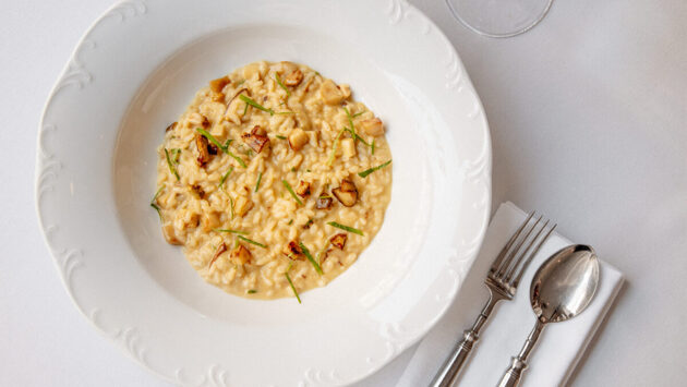 Успейте попробовать filetto al pepe nero с соусом из белых грибов, тартар из говядины, домашние тальятелле и эталонный ризотто в дуэте с белыми грибами из сезонного меню Мануэля Сурачи.