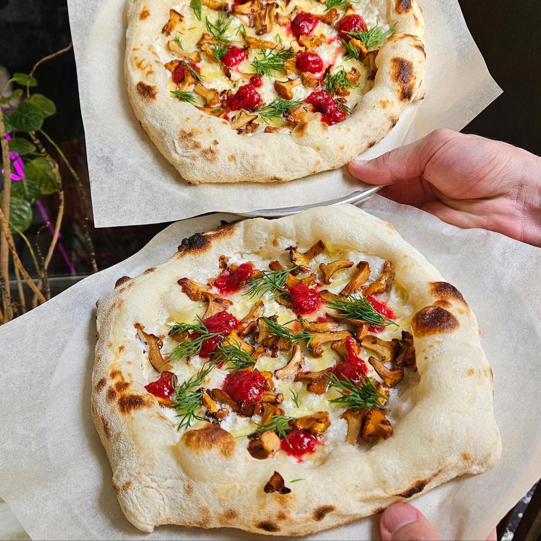 «Песто-цукини», «Баклажан-перец», «Манго-темпе», «Вешенки-кимчи» — неаполитанская пицца готовится на веганский лад с любопытными начинками. Главная героиня заведения томится в большой дровяной печи. Из сладкого правят бал пончики (кокосовые, соленая карамель) и эклеры (матча-фисташка или матча-белый шоколад).