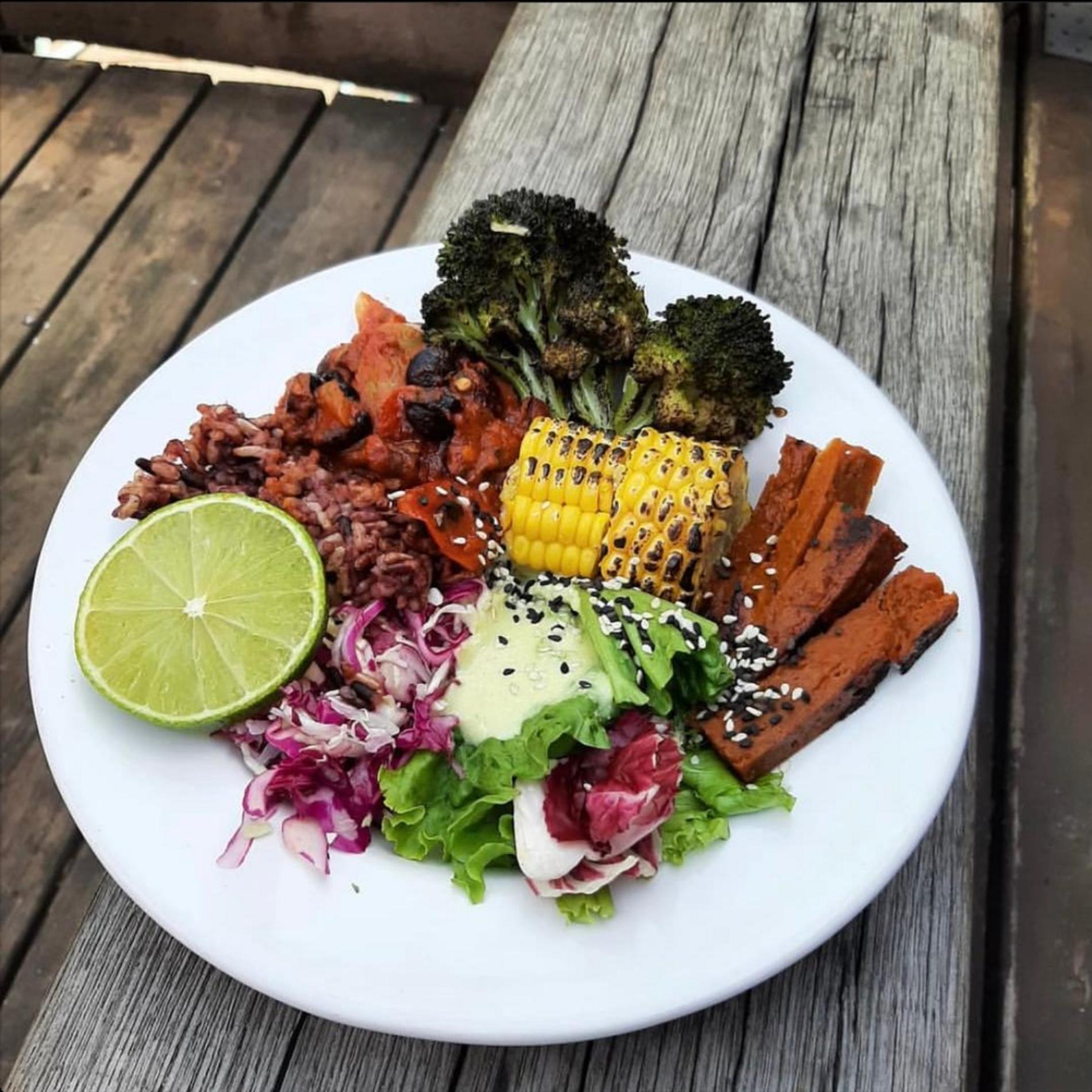 Тофу, темпе, сейтан — с высокобелковыми альтернативами мяса в кафе общаются на ты (рыба, мясо, молоко, конечно же, запрещены). Помимо закусок вроде сэндвичей и онигирадзу на выбор несколько видов боулов, среди них — с полентой, с хумусом, поке и буррито.