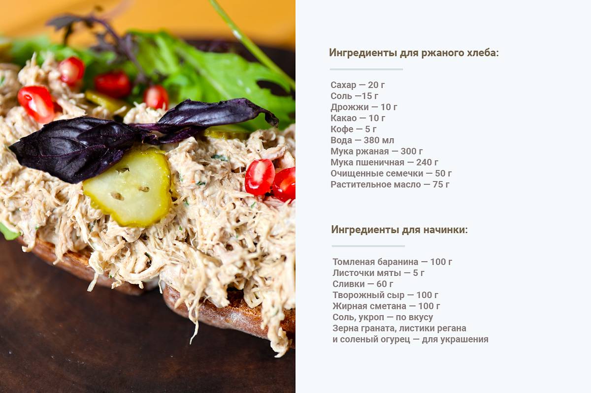 — После вечернего казачьего застолья нередко оставались кусочки мяса. Обычно хозяйки ставили его на ночь в печь для томления, а утром использовали для приготовления завтрака для большой семьи, — рассказывает Роман. — Казаки также всегда любили употреблять в пищу черный хлеб со злаками, поэтому именно из его ломтиков мы соберем брускетту с томленой бараниной. Оба продукта можно заготовить с вечера.