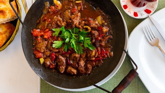 Классическим считается рецепт саджа с мякотью баранины. Также популярностью пользуется блюдо с жареными бараньими потрохами (джиз-быз). Продукты для саджа можно брать любые. Главное, чтобы мясо было свежим, а овощи — спелыми. Баранина на кости, говядина, куриные крылышки, картофель, томаты, баклажаны, лук — все это отлично подойдет для приготовления саджа. Обжаренные ингредиенты соединяют и посыпают кинзой или другой зеленью и подают к столу [3].