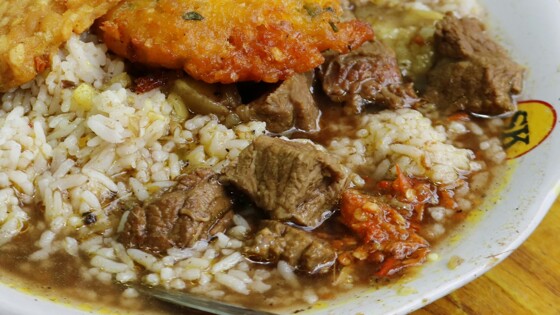 Возьмите 400 г свинины, луковицу, по столовой ложке томатной пасты и муки, по чайной ложке сахара и сухой аджики, соль по вкусу, 1/2 чайной ложки красного перца, два лавровых листа и три столовые ложки растительного масла.