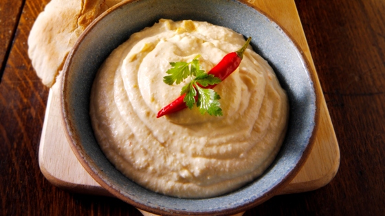 Хумус — блюдо родом из арабских стран. Готовят его из нута, турецкого гороха. Часто хумус подают к столу за завтраком. Пастой смазывают лепешки, хлеб или яйца. Получается сытно и вкусно.