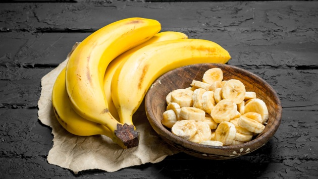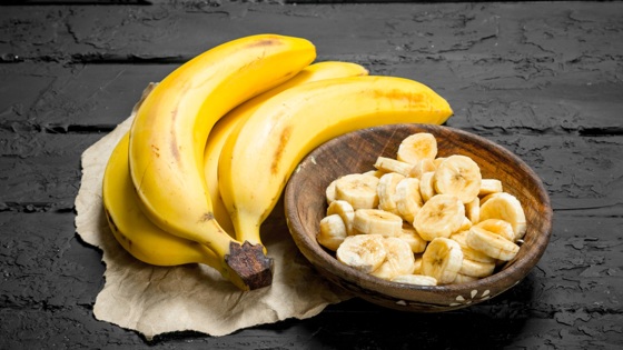 - Банан нарежьте кружочками.