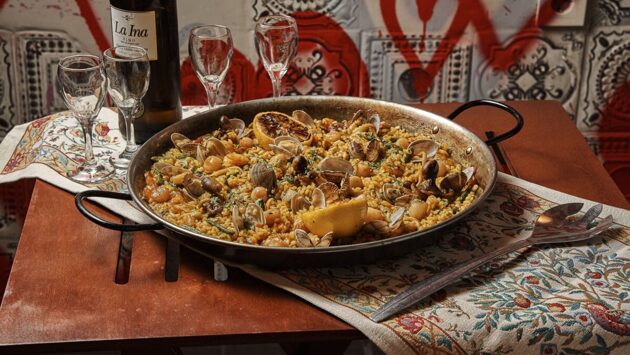Для веселых и дружных компаний рекомендуем взять огромную паэлью ля фамилия, которую подают вместе с хересом фино или Валенсийскую паэлью со стейком фланк, халапеньо и соусом айоли — равнодушным от них никто не останется.