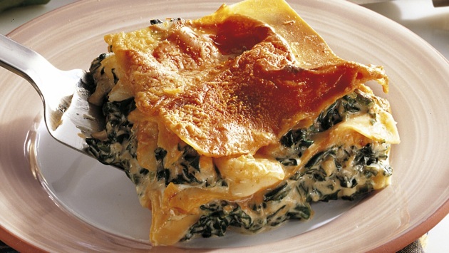 - Если используете свежий шпинат, обжарьте его на сливочном масле с измельченным чесноком 2–3 минуты. Если замороженный, предварительно разморозьте и отожмите лишнюю жидкость.