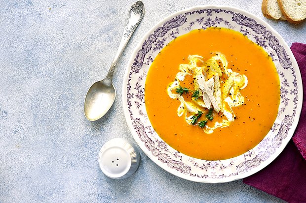 Тыквенное пюре со сливками и куриным бульоном
