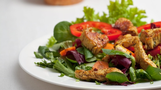 Куриное филе нарежьте небольшими кусочками, посолите, поперчите и добавьте любимые специи. Овощи нарежьте произвольно.