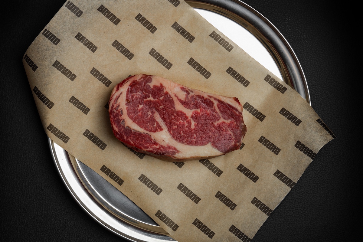В Bruno готовят стейки исключительно сухого вызревания, и хранящиеся на полках отрубы свидетельствуют: не моложе 30 дней. Большую часть полок занимают отрубы черного ангуса и кросс-вагю от «Мираторга» (900–2900 р. за 100 г), также есть аргентинский рибай (2500 р. за 100 г) и японский стриплойн вагю высшего грейда мраморности А5 (10 000 р. за 100 г).