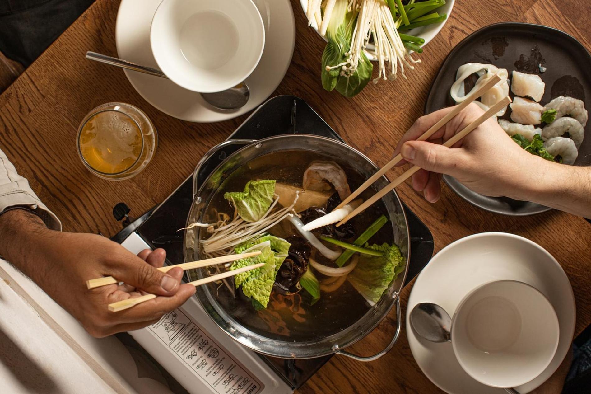 Самая важная часть новогодних торжеств — ужин воссоединения с близкими. А чтобы усилить ощущение единения, можно подать соответствующее блюдо. Речь про хо-го — «китайский самовар», когда к столу приносят кастрюлю с кипящим бульоном (например, от фо бо или том яма), в котором гости сами варят выбранные продукты: мясо, овощи, морепродукты.