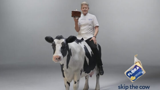 Гордон Рамзи стал лицом кампании масла для веганов Flora. В рекламном ролике знаменитый шеф-повар появился верхом на корове, а сама кампания носит символичное название Skip the cow («"Скипни" корову»).