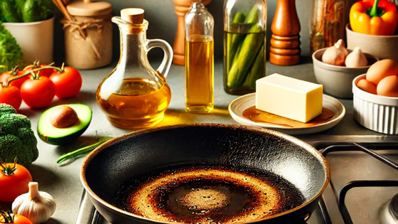 Использование некачественных масел и жиров, таких как дешевые растительные масла, ухудшает качество пищи. Лучший выбор — оливковое масло, топленое масло, масло авокадо или кокосовое масло. Также важно правильно ухаживать за чугунной посудой, тщательно очищая её и высушивая над огнем.