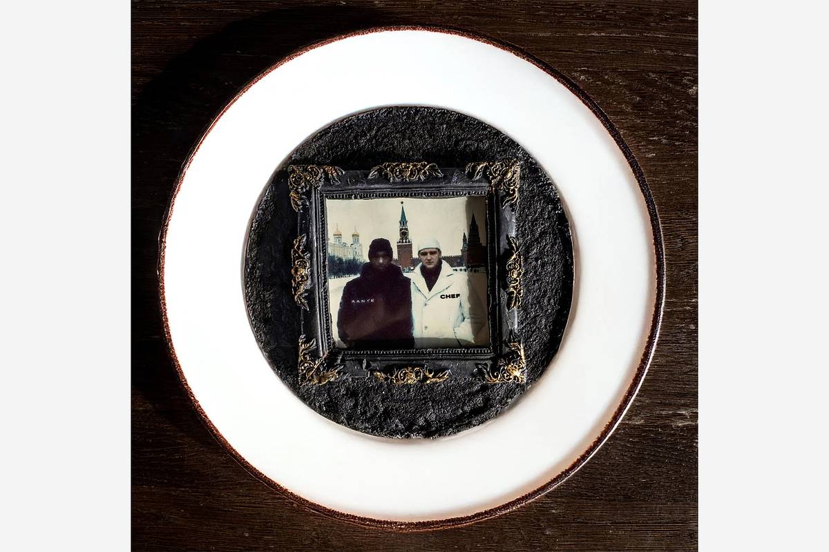 «Главная часть десерта — это съедобная фотография, созданная с помощью искусственного интеллекта, на которой шеф-повар запечатлен вместе с Канье Уэстом на Красной площади», — говорится в описании.