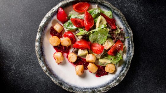 Салаты – неотъемлемая и важная часть постного меню. В состав салата с авокадо, креветками и тофу входят крупные тигровые креветки, томаты и базилик. Подаётся салат с семенами чиа и кокосовым соусом. Салат с гребешками и ореховым соусом– ещё одно постное блюдо, которое включает в себя микс салатов с красным луком и помидорами конкассе с ореховым соусом.