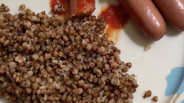 30-летняя манекенщица запечатлела тарелку с вареной гречневой крупой и тремя сосисками. Также она добавила в блюдо соус красного цвета.