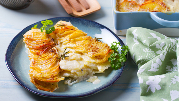 - Нарежьте картофель кружочками, лук — полукольцами.
