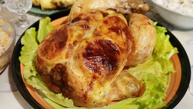 Простой и нехлопотный рецепт запеченной курицы. Вкус и аромат придают мандарины.
