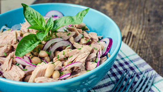 - Тунец разомните вилкой, фасоль промойте и обсушите.