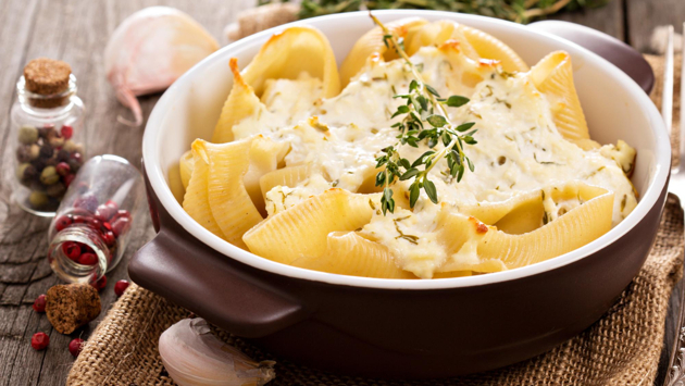 В форму для запекания кладут камамбер, добавляют зубчики чеснока, черри и немного оливкового масла. Все это посыпают специями, подойдет розмарин, тимьян или прованские травы, и отправляют в духовку на 20 минут при температуре 170 °C. Пока смесь запекается, отваривают пасту и сохраняют немного воды для соуса.