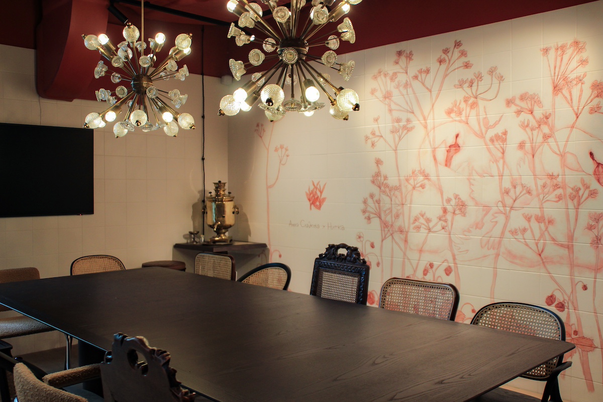 Современная русская чайная «Нитка» — пример того, как домашний напиток можно сделать модным в мегаполисе. Чемпион России по чайной миксологии Андрей Колбасинов первую чайную открыл в Центре Андрея Вознесенского на Большой Ордынке, собрав интерьер, можно сказать, ниточка за ниточкой: ампирный особняк 1815 года с восстановленной лепниной, винтажная мебель с аукционов, советские подстаканники и тульский самовар конца XIX века, который иногда разжигают во дворе. В обычные дни чай готовят с помощью современного оборудования, но ностальгические вайбы тоже раздавать не забывают — авторские купажи подаются в стаканах с нарядными подстаканниками. Сегодня «Нитка» живет уже в нескольких пространствах: на Трубной, в «Неглинной Галерее» и на Гоголевском бульваре, где можно выпить чай, купить бленд домой или попасть на лекцию. Название для бренда выбрано не случайно: это и караваны верблюдов, которые доставляли чай из Китая в Россию, и красная нить восточной традиции, символизирующая связь между людьми, и английская red thread, вплетенная в канаты королевского военно-морского флота Англии как знак общности. Андрей Колбасинов увидел образ чайной в акварели Екатерины Михайлиной, на которой изображены воробьи, собирающие бусины у самовара, так и решив собирать людей вокруг философии русского чаепития.