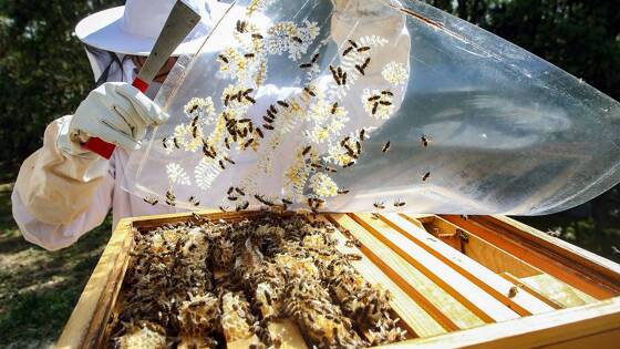 «У этой семьи что-то случилось, — прислушивается Дмитрий к пчелам. — Они лишились матки, слышите, как они обеспокоены и тревожно гудят».