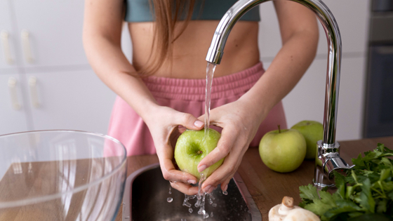 Самым эффективным и простым способом эксперты werywell называют промывание овощей и фруктов чистой холодной водой. Так можно очистить их от грязи, насекомых, клея для ценников, болезнетворных микроорганизмов и, в том числе, снизить количество остатков пестицидов.