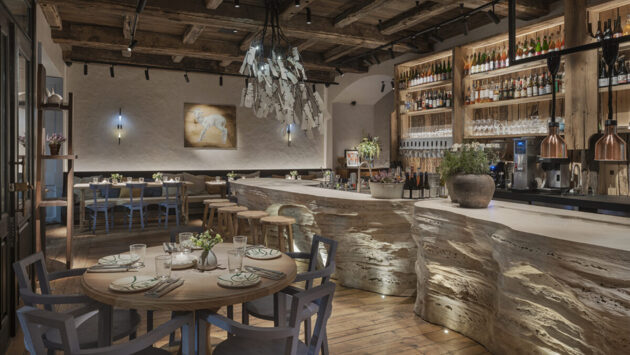 На благодатной почве Пятницкой новый тренд звучит свежо и смело: в ряду популярных баров Gask Bro (Prscco Bar, Моряк и чайка, Parka и др.) Pomme Verte – первый элегантный ресторан, с французской кухней, известным шефом, хорошим сервисом и неожиданными для этого сочетания ценами. Скорее по-питерски, чем по-московски, но, в первую очередь, — по-нормандски. Старое дерево потолочных балок, словно пропитанное солью морского ветра, каменные барные стойки и острова, похожие на возвышающиеся над Атлантикой алебастровые скалы Этрета, и уютно поскрипывающие деревянные полы – здесь каждый шаг погружает в атмосферу, и каждая деталь наполнена историей.