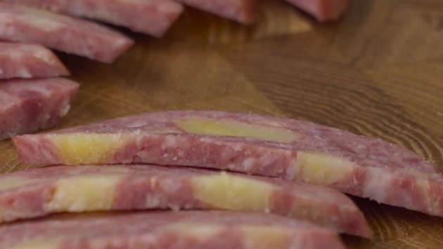 Готовые батоны сначала варят, а затем коптят на буковой щепе. Она считается более благородной, чем из ольхи. Именно бук придает сервелату нежный привкус дыма и карамельный цвет.