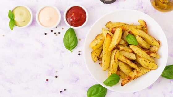 Картофельные палочки считаются универсальной закуской. Их можно приготовить тремя разными способами. Самый калорийный вариант — обжарка во фритюре, а более полезные получаются в духовке. Они отлично сочетаются с соусами и соленьями.
