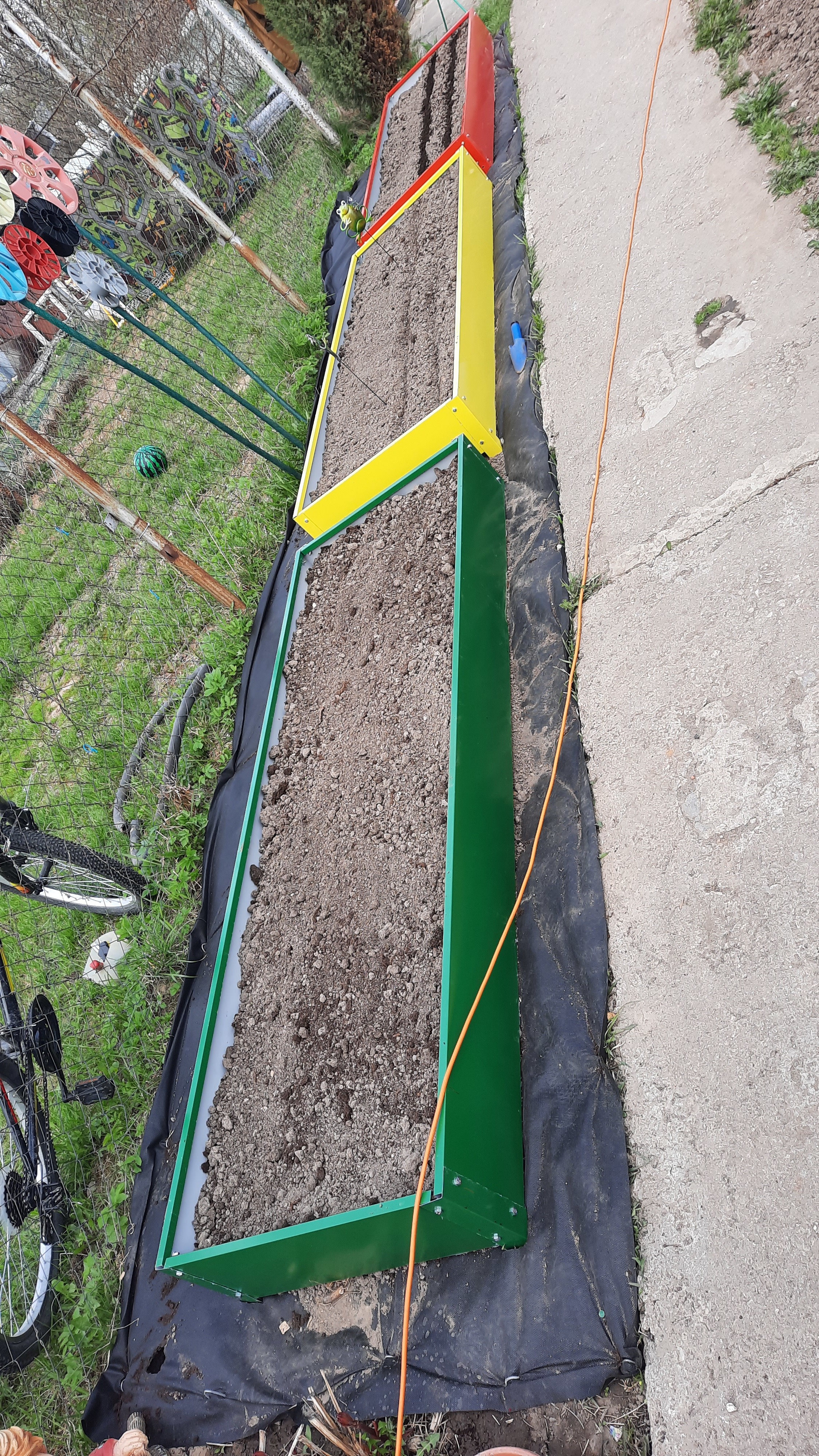 Готовые сборные разноцветные грядки (размер 2 м на 60 см — железо с полимерным покрытием) — 3 шт.Агроткань — 7 мПлодородный грунтРассада цветовСемена зелени (укроп, петрушка, редис, шпинат, салат, базилик, лук севок)