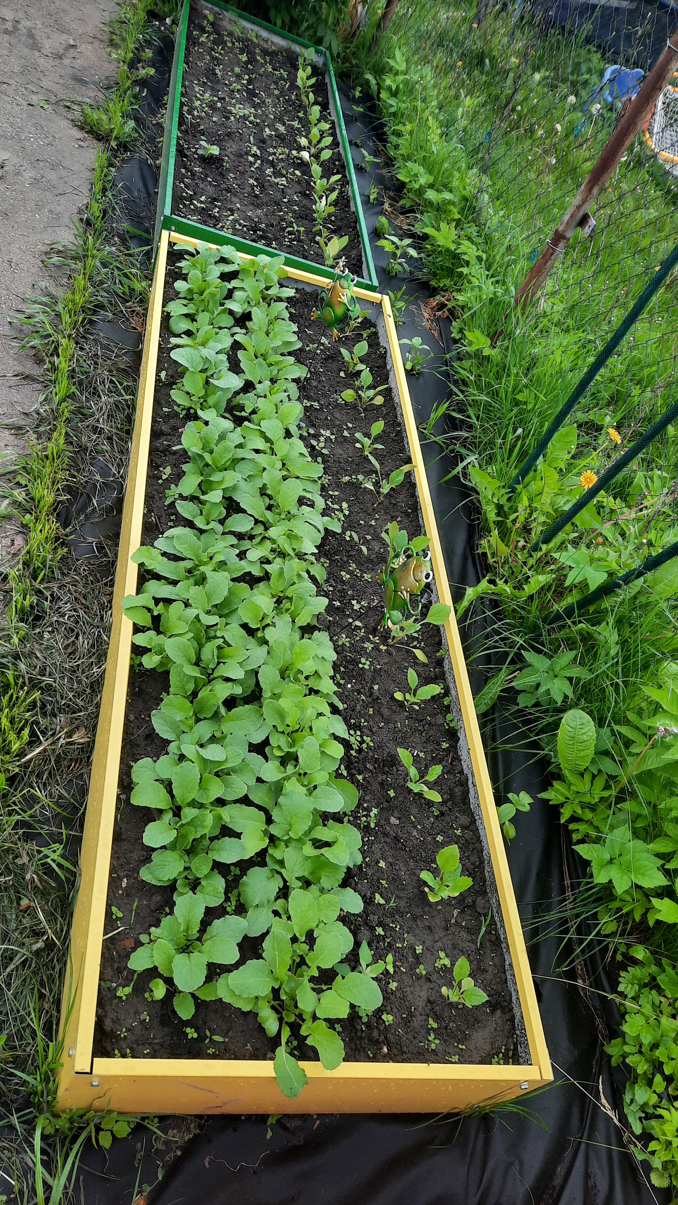 Сейчас растёт второй укроп, третий салат (капуста листовая), третья редиска, лук-севок.