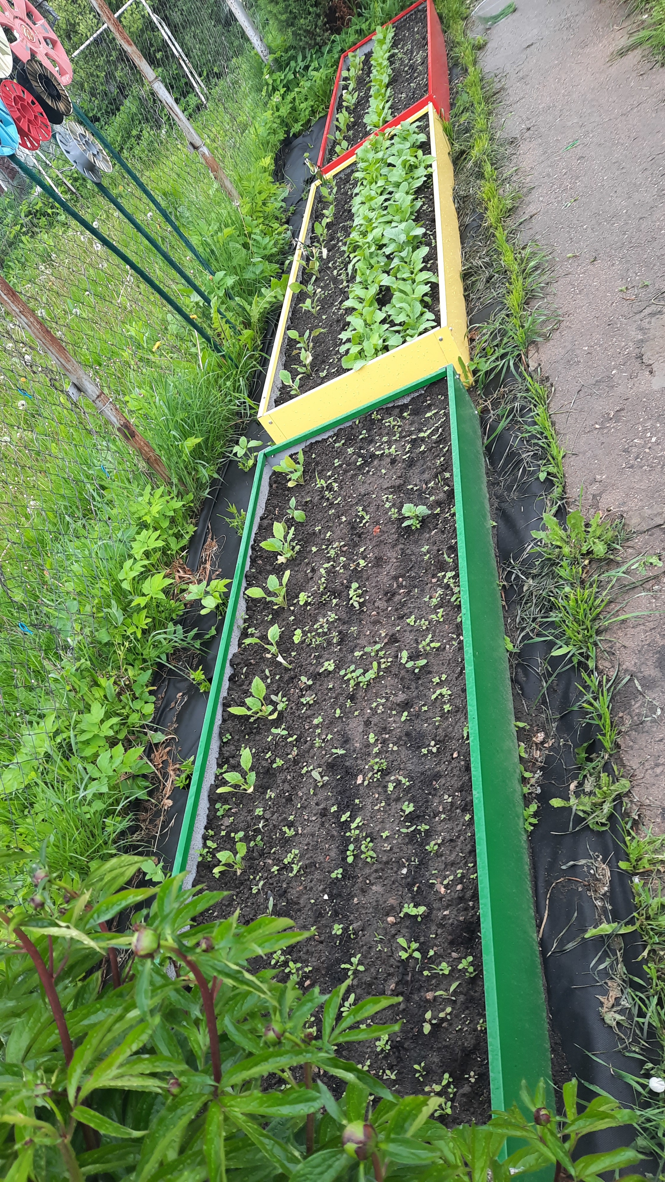 Застелила поэтому дно агротканью. Установила новенькие грядочки и заполнила хорошей плодородной земелькой. И тут встал вопрос: а что же посадить теперь? Цветы вдоль дорожки, конечно, красиво, и я их обожаю, но практичный огородник вступил в спор с предложением подумать над разноцветным салатом, кудрявой петрушкой и редиской. В упорной борьбе цветовода и огородника в итоге победила дружба!