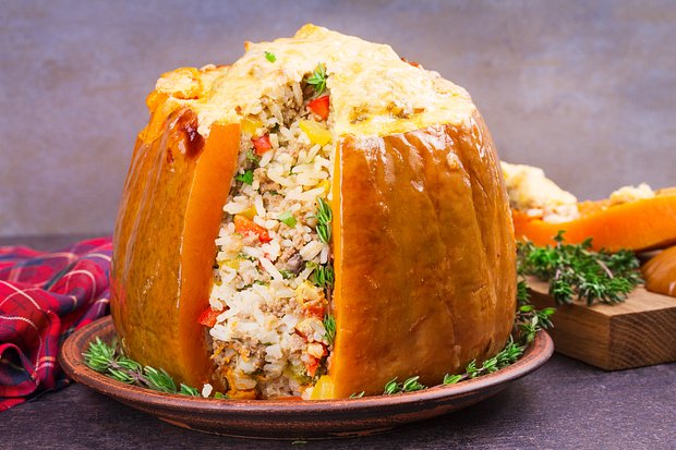 «Грибовская» — вкус нейтральный, цвет мякоти бледно-оранжевый, отлично держит форму при фаршировании и запекании. «Акорн» («Желудевая») — тыква плотной текстуры, часто используется для запекания дольками.