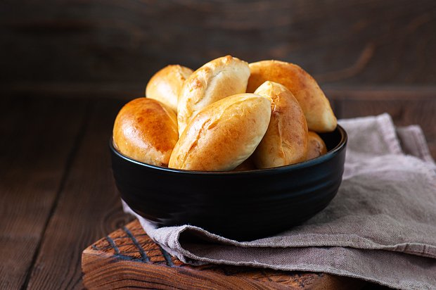 Приготовьте опару: подогрейте молоко до температуры 37-38 градусов, растворите в нем дрожжи и одну столовую ложку сахара из общего количества. Добавьте в опару 200 граммов муки, перемешайте до однородности и оставьте в теплом месте на 30 минут. Если опара запузырится и увеличится в несколько раз, значит, дрожжи хорошо работают. Если почти не изменилась за эти полчаса, лучше возьмите другие дрожжи и замесите опару снова. В подошедшую опару добавьте растопленное теплое масло, оставшийся сахар, соль и яйцо. Постепенно вводите оставшуюся муку, вымешивая руками эластичное тесто в течение 10-15 минут. Чем дольше и тщательнее вымешивать, тем воздушнее получатся пирожки. Накройте тесто полотенцем и поставьте в теплое место подниматься на час-полтора. Приготовьте начинку: натрите тыкву на крупной терке и обжарьте на сливочном масле 10 минут. Добавьте к тыкве сахар, корицу, мускатный орех и цедру апельсина, тушите еще пять минут. Охладите начинку полностью, затем отожмите ложкой выделившийся сок. Обомните подошедшее тесто и разделите на 16 равных частей весом около 60-70 граммов каждая. Раскатайте каждую часть в круглую лепешку. Выложите на каждый кругляш теста 1-1,5 столовой ложки начинки и защипните края, формируя пирожок. Выложите пирожки на противень, застеленный пергаментом, швом вниз. Оставьте пирожки для расстойки в теплом месте на 20-25 минут. Смешайте желток с молоком и аккуратно смажьте поверхность пирожков. Выпекайте в разогретой до 180 градусов духовке 20-25 минут до золотистого цвета. Достаньте готовые пирожки из духовки и смажьте сливочным маслом.