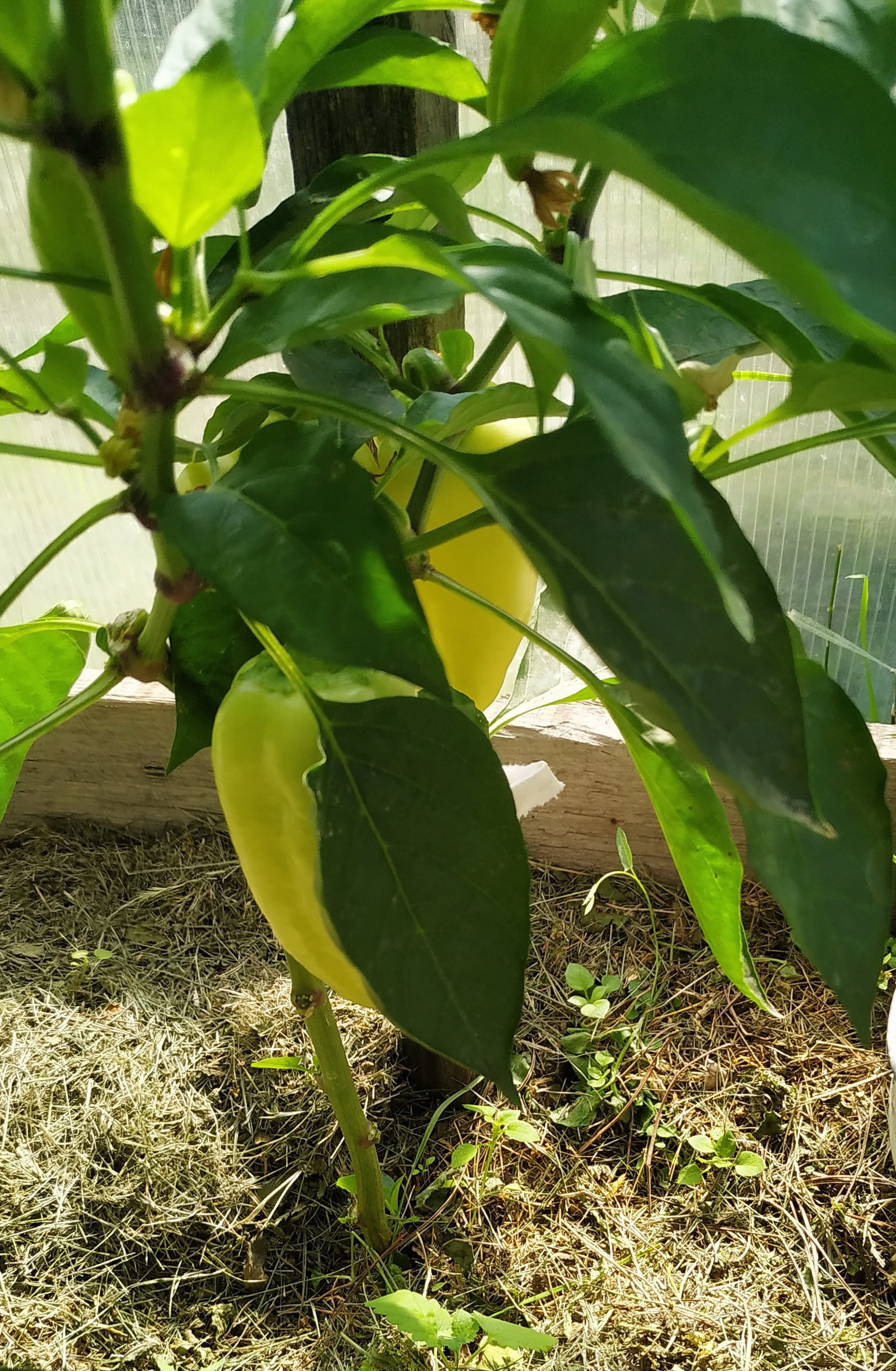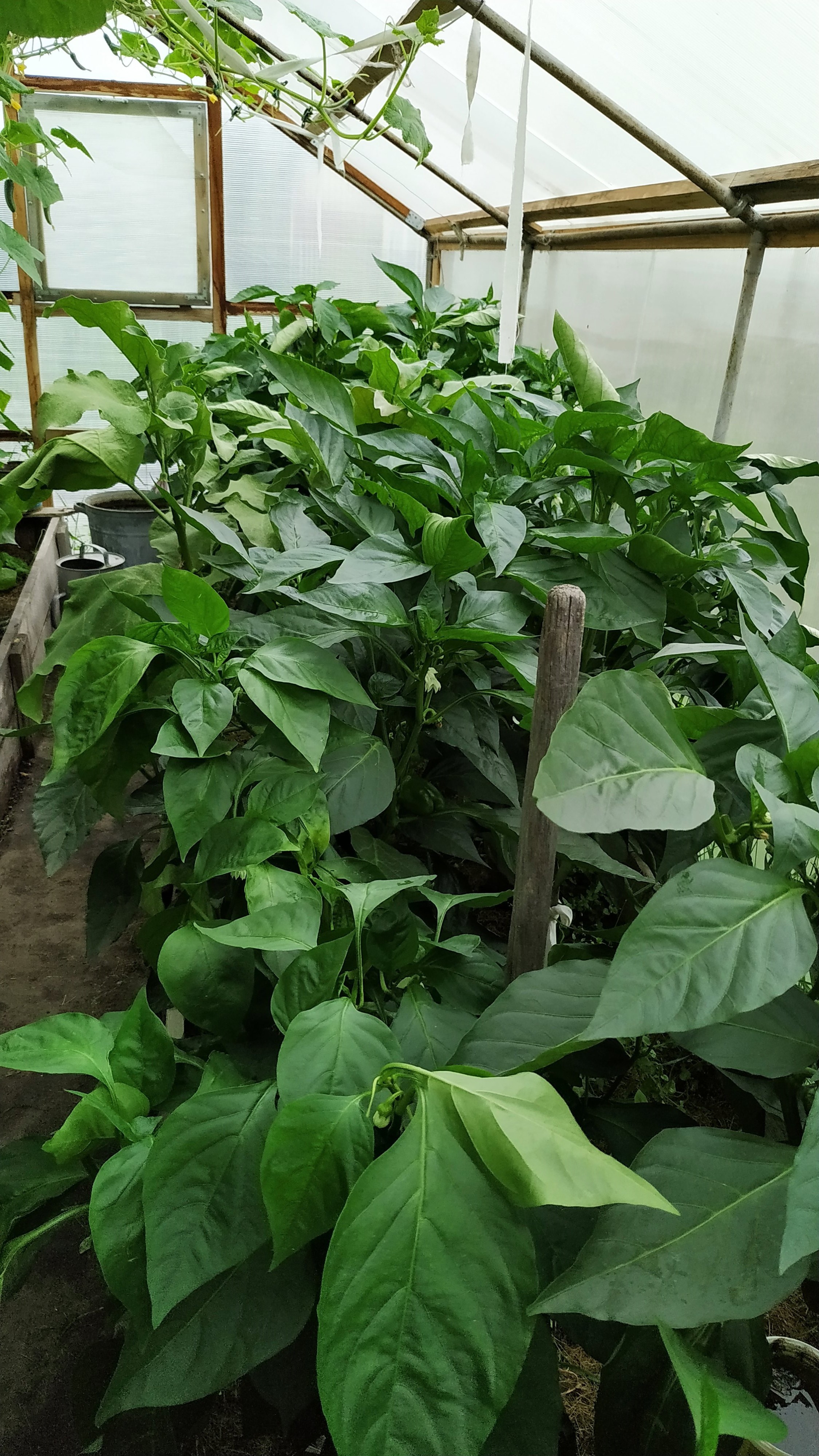 Появление большой теплицы для томатов тоже ситуацию не исправило, несмотря на толстую армированную пленку. Перчики не вызревали, оставались мелкими и тонкостенными. Кусты чахли, почти не росли.