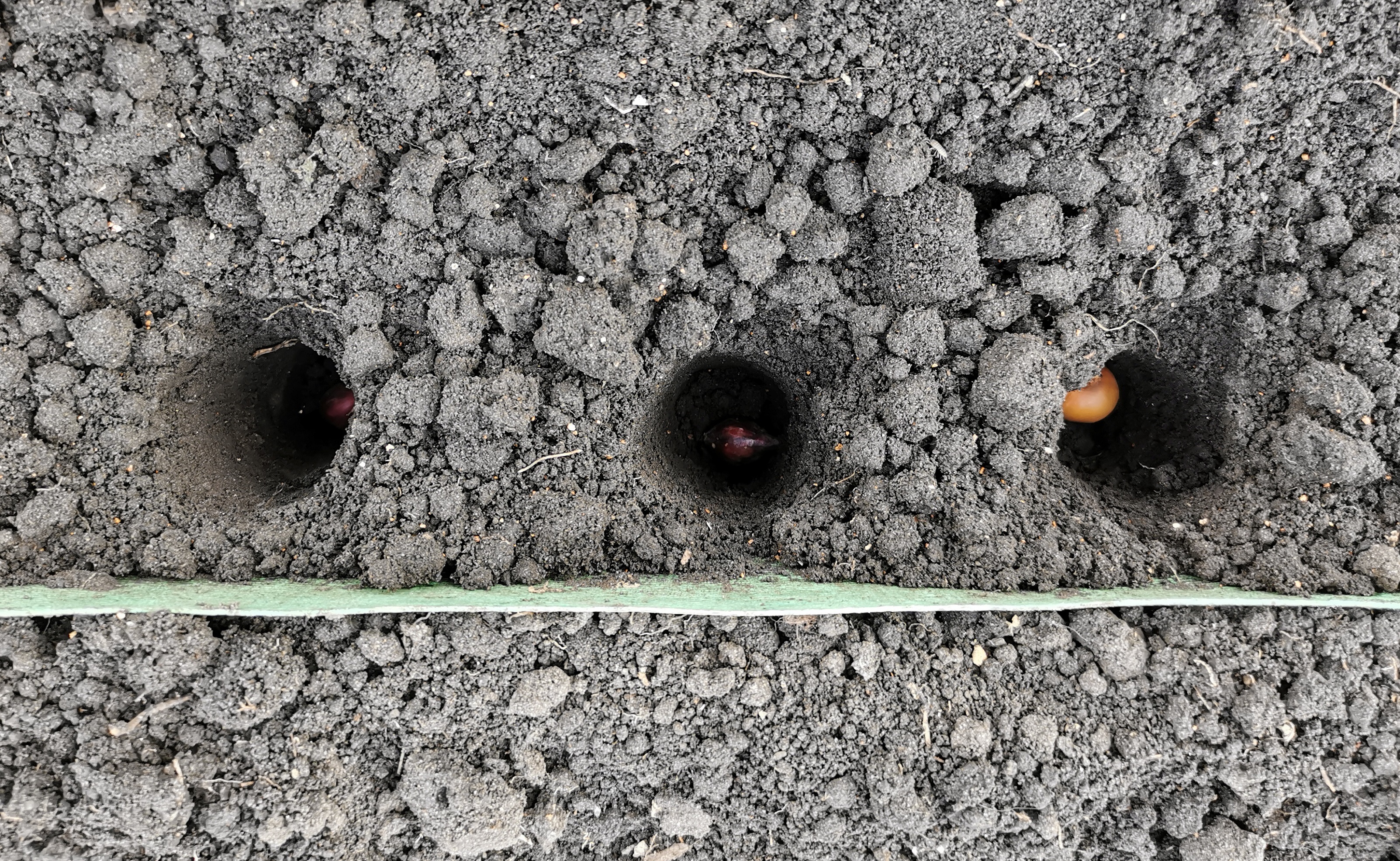 Итак, по бороздке, предназначенной для посадки луковичек севка, рассыпаем разрыхлитель, рыхлим культиватором для перемешивания с грунтом и делаем деревянным колом лунки. Ямки делаем глубже, чем требуется, потому что, добавив в них по 3-4 гранулы удобрения Bona Forte осень-зима, нужно будет присыпать гранулы удобрения землей и лишь потом разложить семенной лук по лункам.