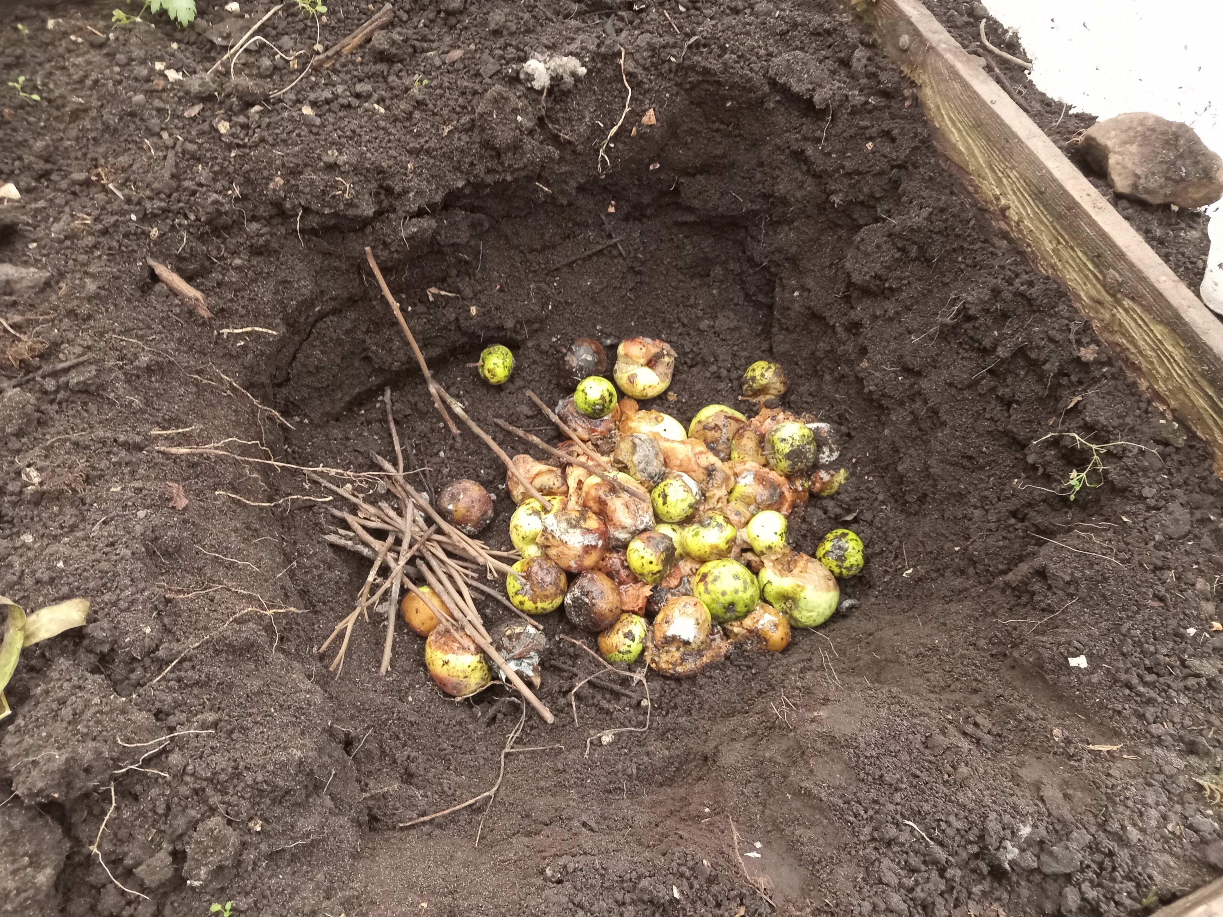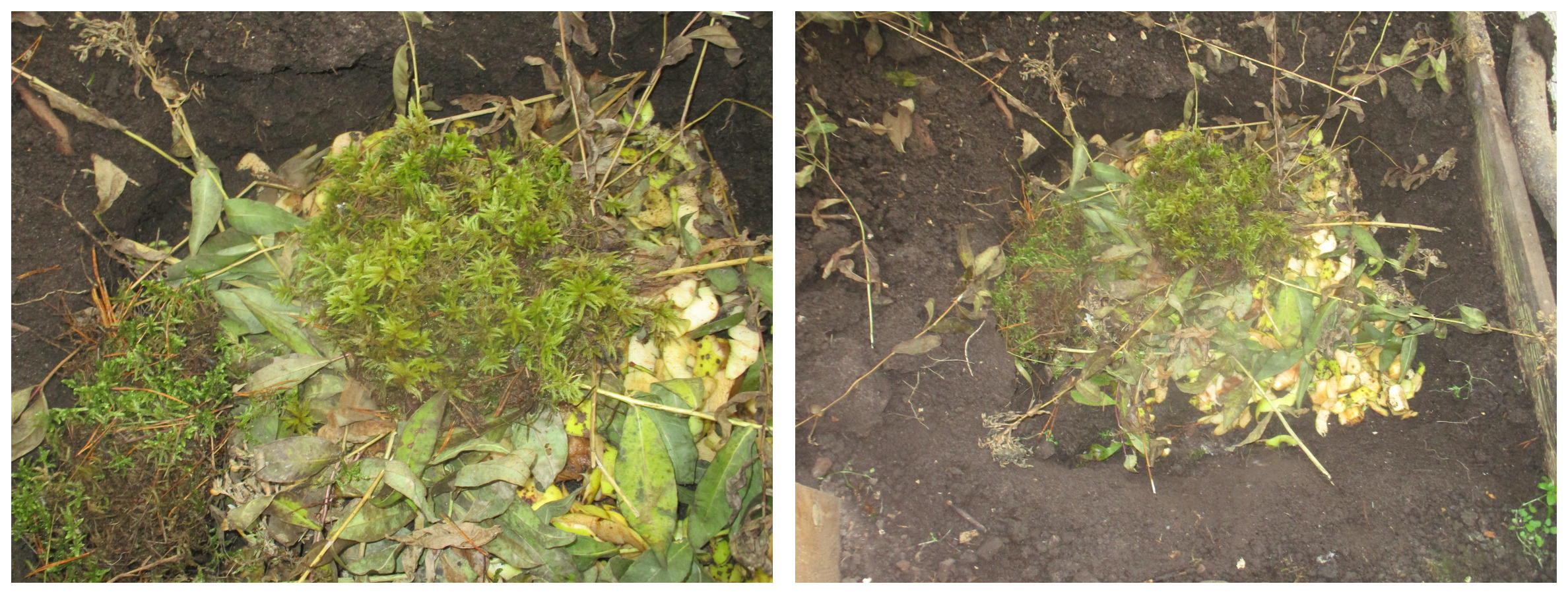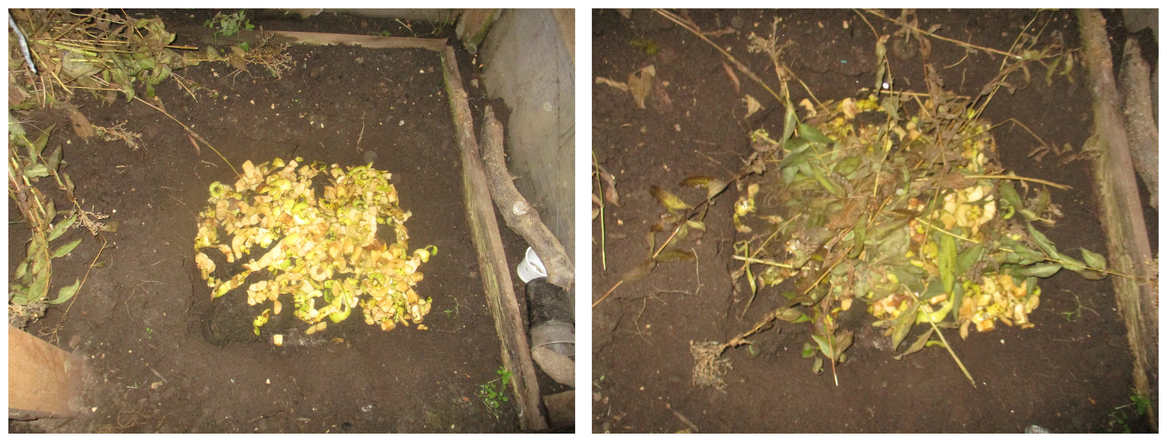 На навоз снова положила порезанные яблочные очистки и ветки от цветов.
