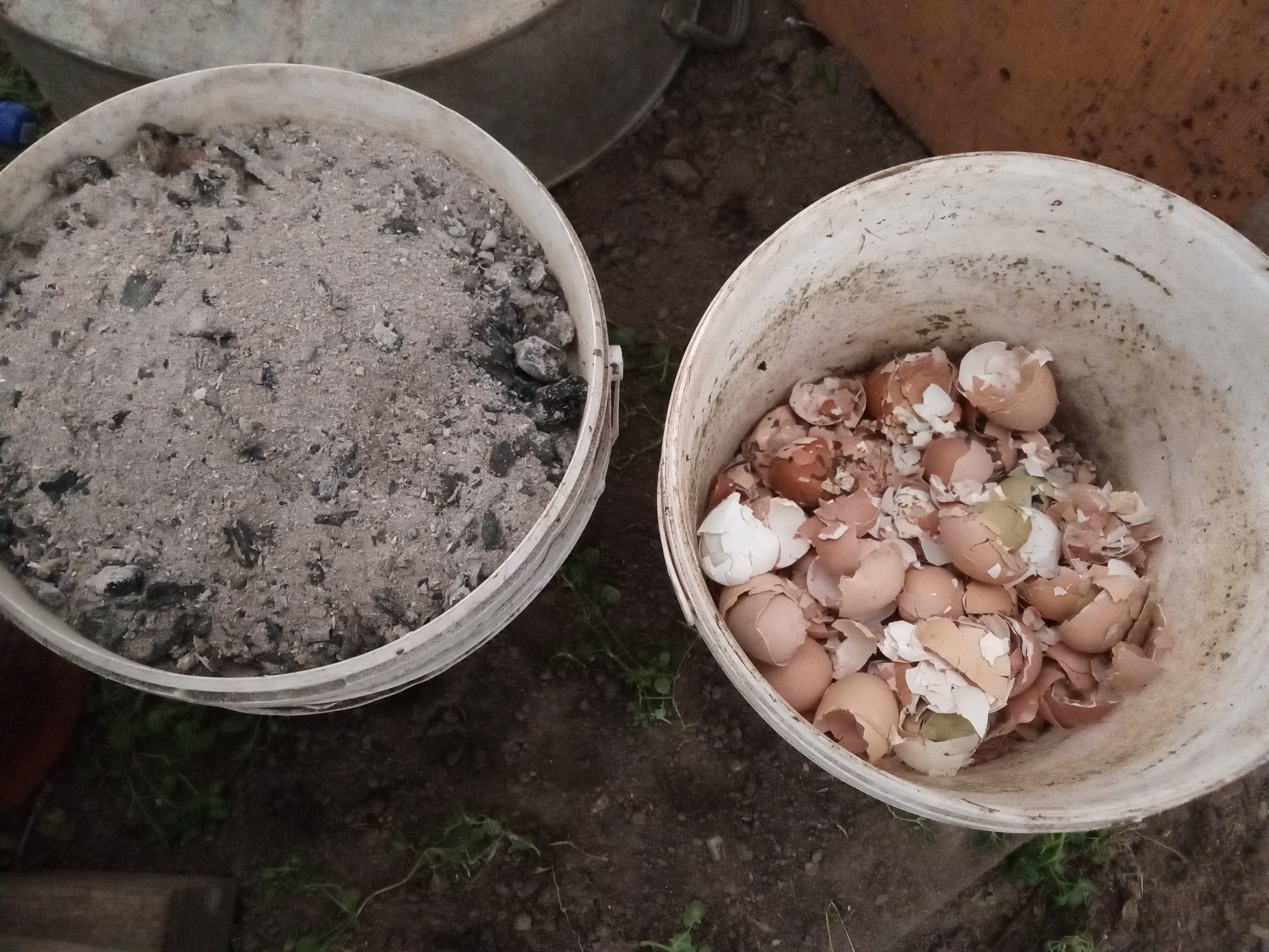 Затем положила ведро куриного навоза.